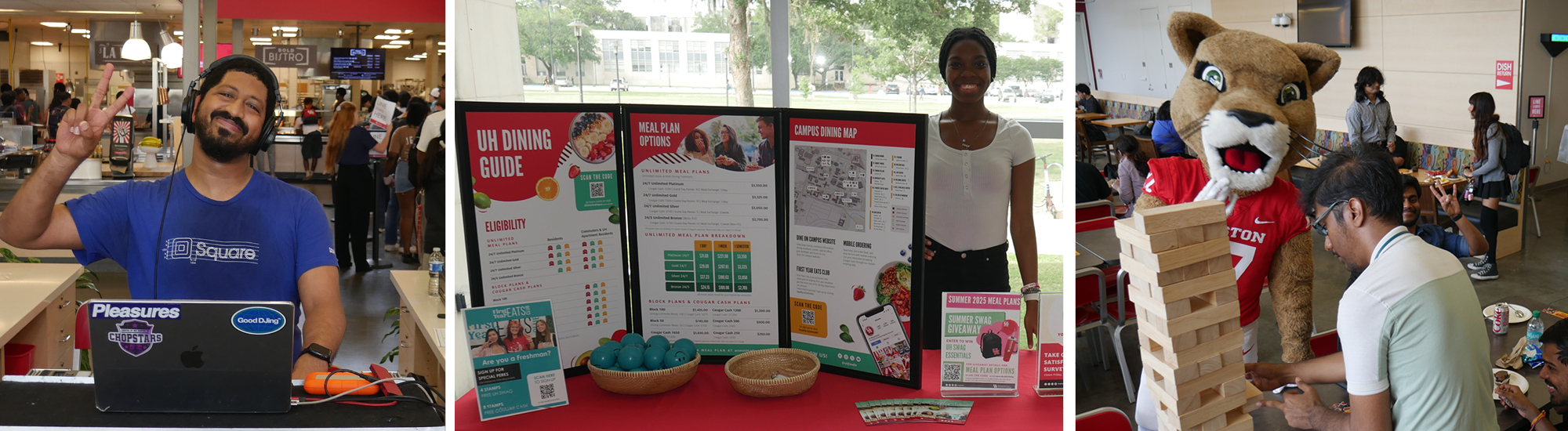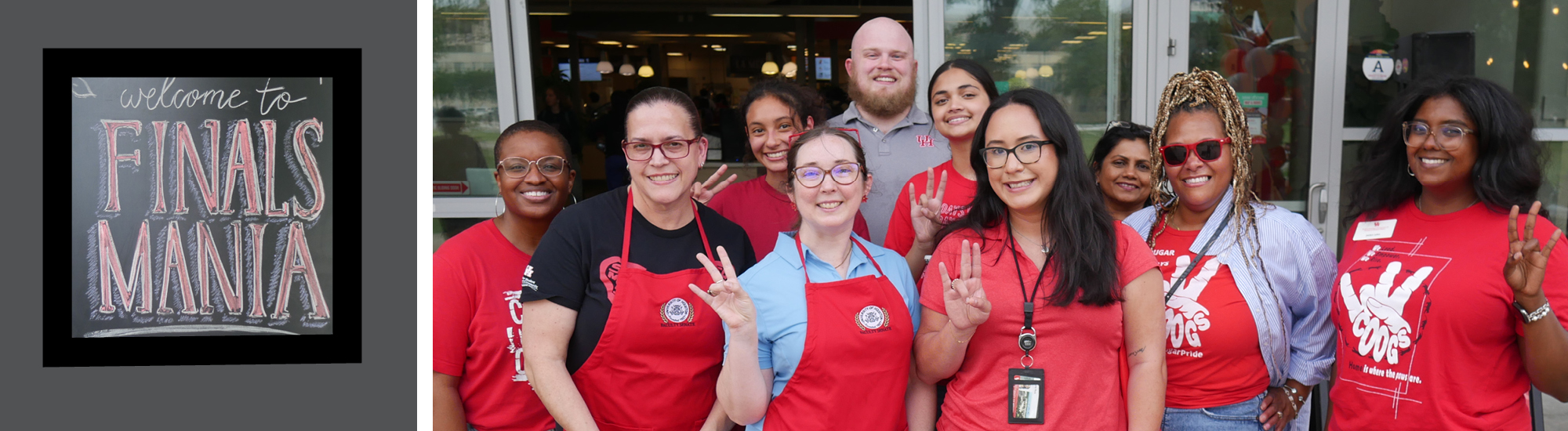 Nearly a thousand UH students took a break from their studies to participate in the traditional Finals Mania event at Cougar Woods Dining Commons. Music played by the deejay attracted students, while Shasta and volunteers handed out snacks for the week. Cougar Card Services scanned students’ Cougar Cards for entry, and Student Housing and Residential Life set up a table to assist with preparations for the next semester.