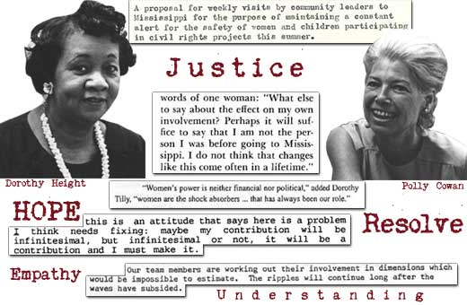 search for justice.The teams would be interracial and interfaith. They would leave on a Tuesday and return on a Thursday. Since they would be there all day on Wednesday, the program became known as Wednesdays in Mississippi. Competent, well-connected, and educated, these women would observe the Freedom Summer and the Freedom Schools, an activity that was appropriate for women and mothers. They would bring local women together and extend HOPE as they opened up what James Silver had called “The Closed Society.” They hoped to bring resolve, empathy, and understanding to the women of Mississippi.
