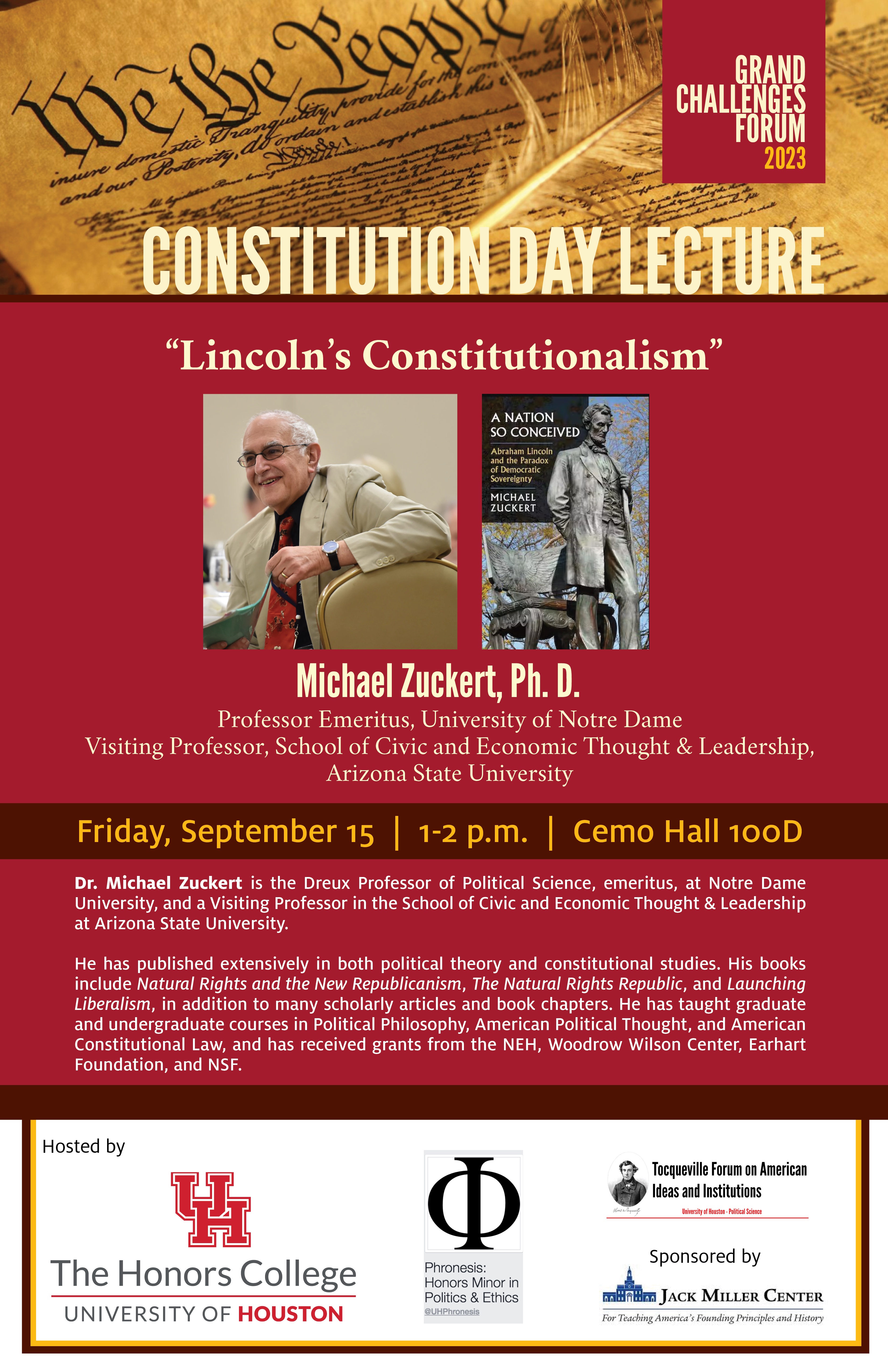 September 15: Prof. Michael Zuckert - Notre Dame